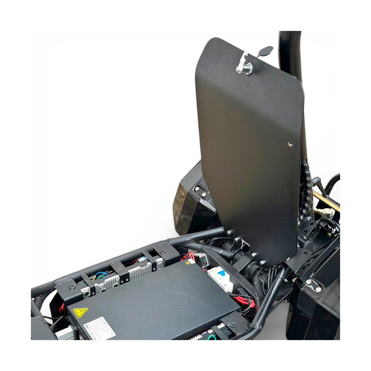 El chasis está fabricado con una estructura de acero de alta resistencia, preparada para un uso exigente y una carga máxima de hasta 150 kg. La altura libre al suelo de 168 mm mejora la capacidad para superar obstáculos y moverse con soltura en terrenos irregulares.